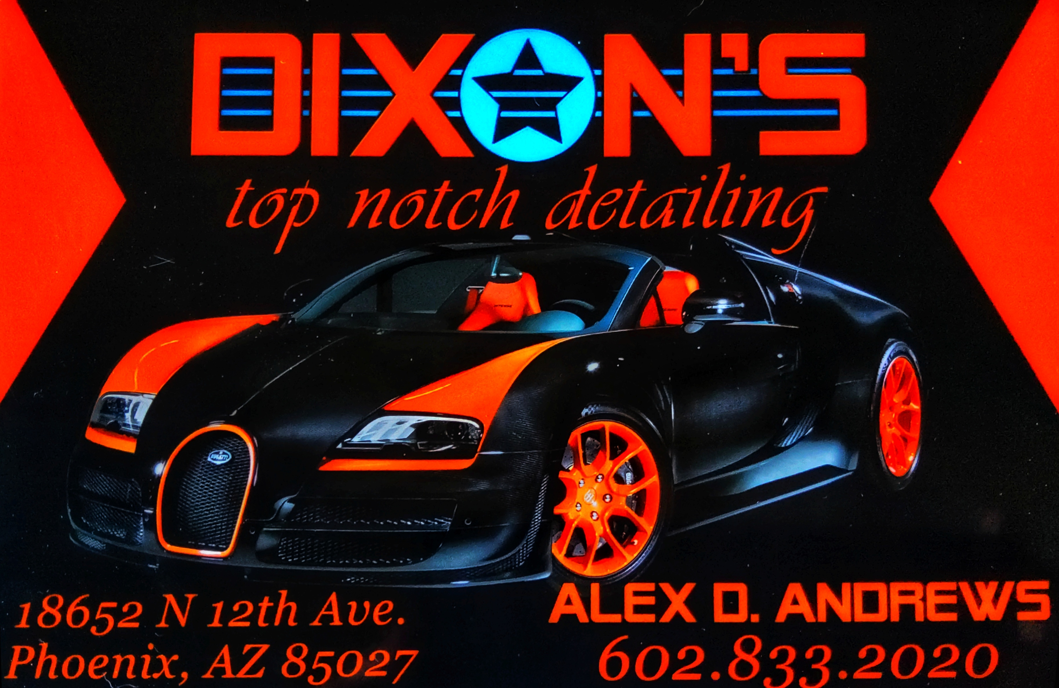 Hi, I'm Alex Dixon (owner/operator) at Dixon's Top Notch Detailing. EST. Sep.-2018. I have been Detailing for over 5 years in the phoenix metropolitan area. Here at Dixon's Top Notch Detailing, we take great pride in our work and you can always trust us to give our honest advice when working with your vehicles. I am a very hard worker and have dreams of someday growing this company to several Detailing fleets throughout the valley. It all starts with making sure that you are satisfied with our work and a returning customer. Come join our team of happy clients with your car looking as Top Notch as theirs.