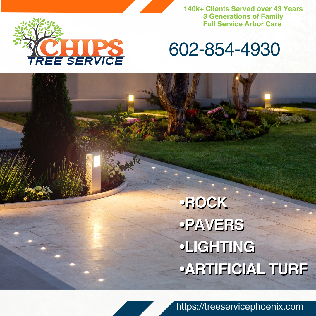Phoenix Tree, Precision Take Down, Hedging, Stump Grinding, Cleanups, Recommended Pruning, Reducing, Organic Deep Root Feeding And Complete Tree Care, Chipping, Removing Tree & Bush Debris. irrigation services, removal and replacing rocks, etc.)Planting