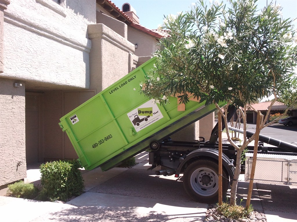 Bin There Dump That is a residential friendly mini roll off dumpster rental service. We have dumpsters specifically designed for placement in driveways without damaging your property. We protect the surface the bins are placed on with wood and will sweep up when the bin is removed. All of our bins have double doors on the back for easy access and we offer 4 sizes to fit the scale of your needs: 4yd, 10yd, 14yd and 20yd.