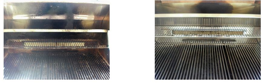 The young man who cleaned the grill called ahead, was on time and the grill was so much cleaner than my husband was ever able to accomplish. While he had previously cleaned the grates and the inner workings of the BBQ hubby had never bothered to clean the inside of the hood. There was 12+ years of built up gunk on the underside of the lid! They did an amazing job on the inside and the outside sparkled too. Wish I'd done it years ago and will pass the information on to the new buyers of our home. The price was $105 less than I was quoted by another company.