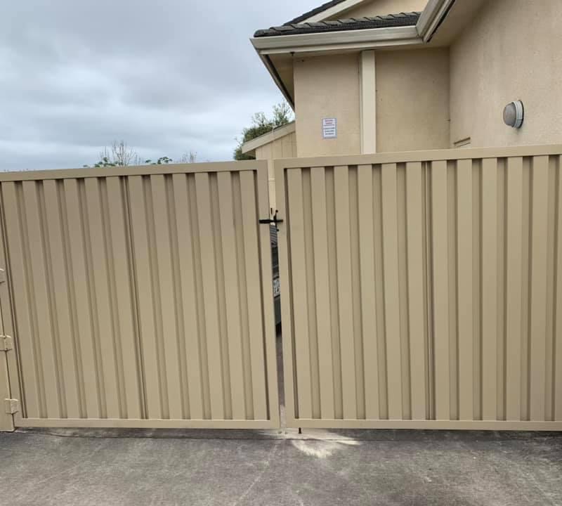 Steel-framed wood faced gate