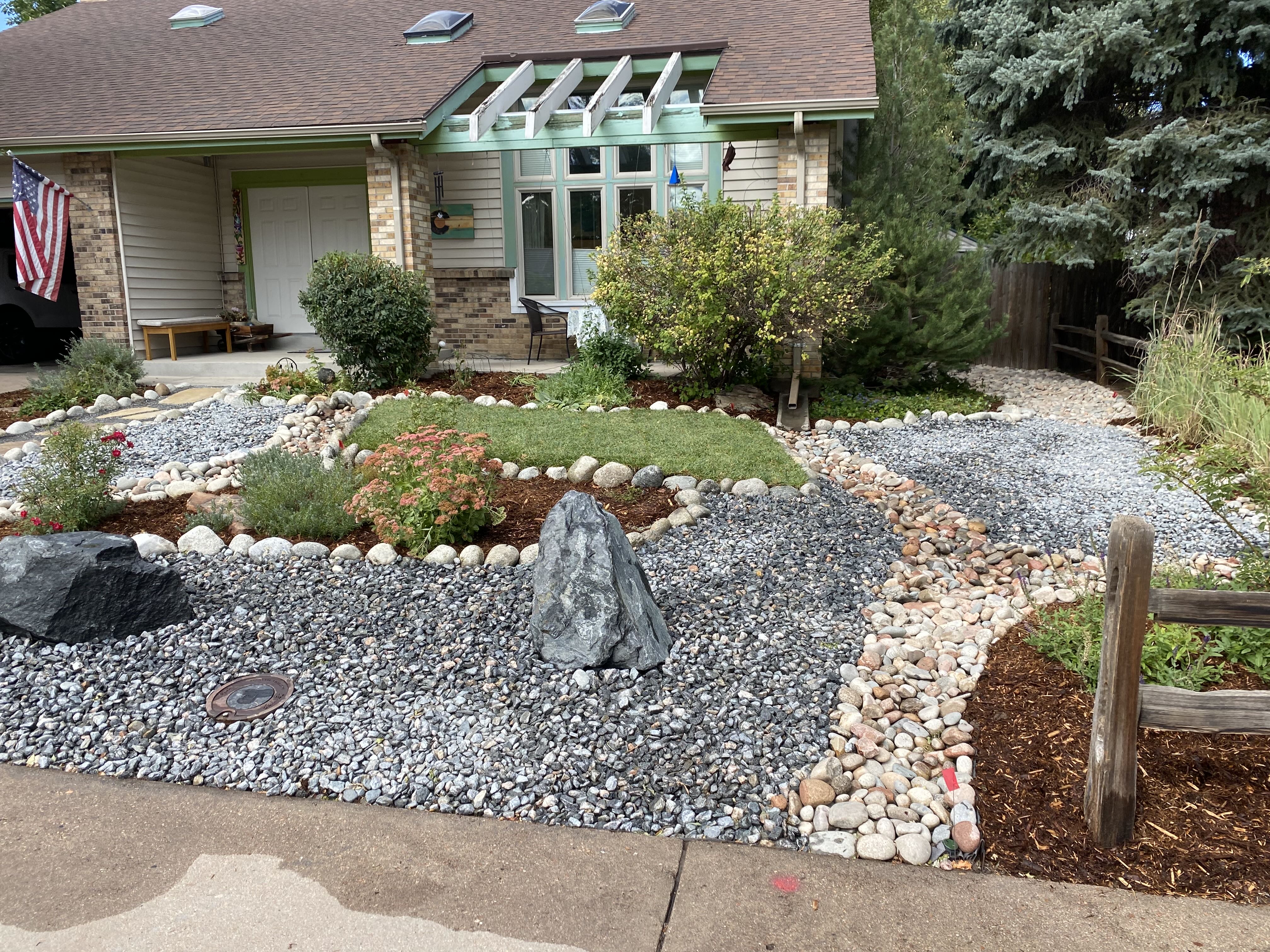 Think Ahead Landscaping moved quickly to plant xeric plants, cover with mulch, and connect them to the sprinkling system via dripline. The plants look very healthy