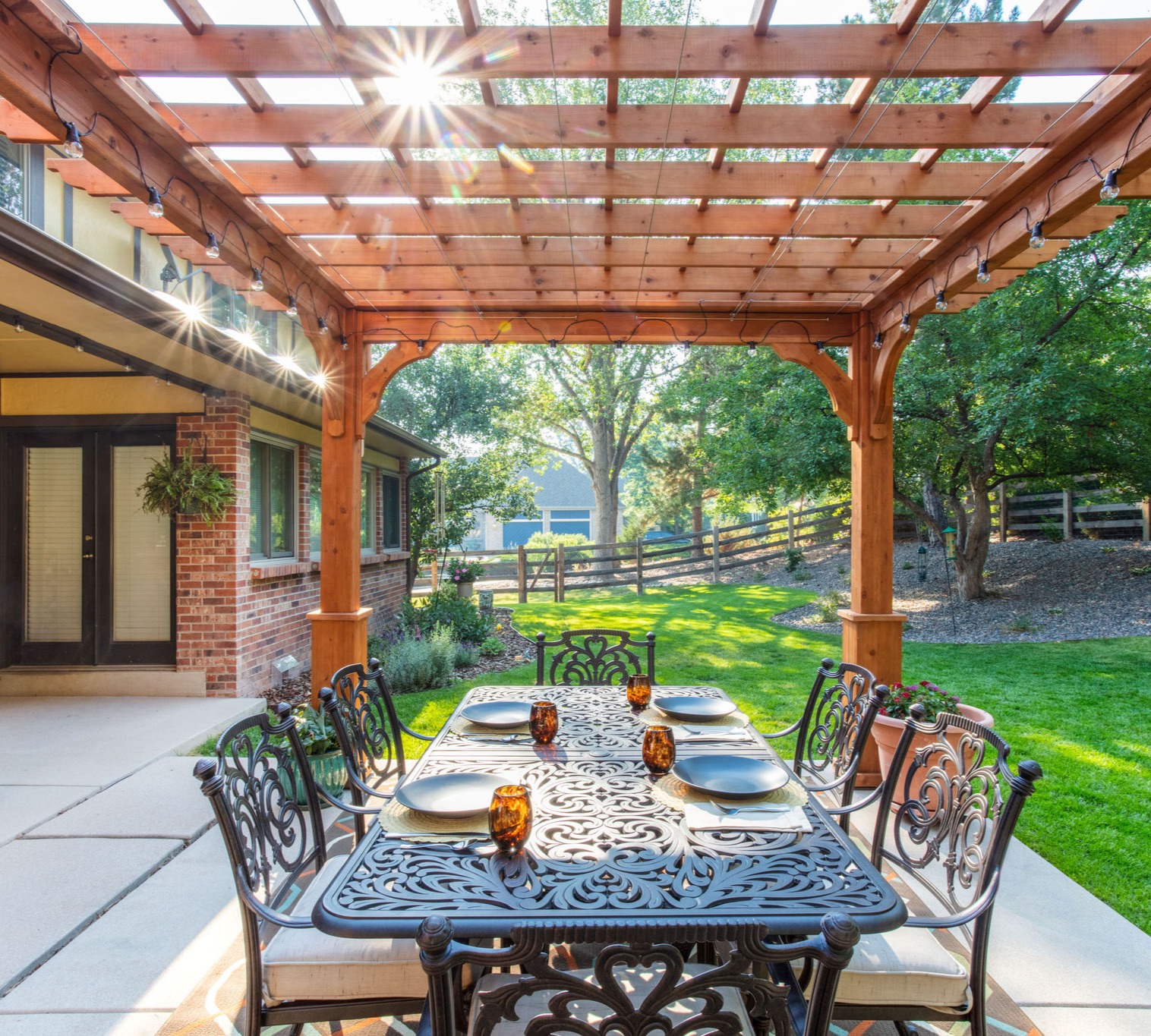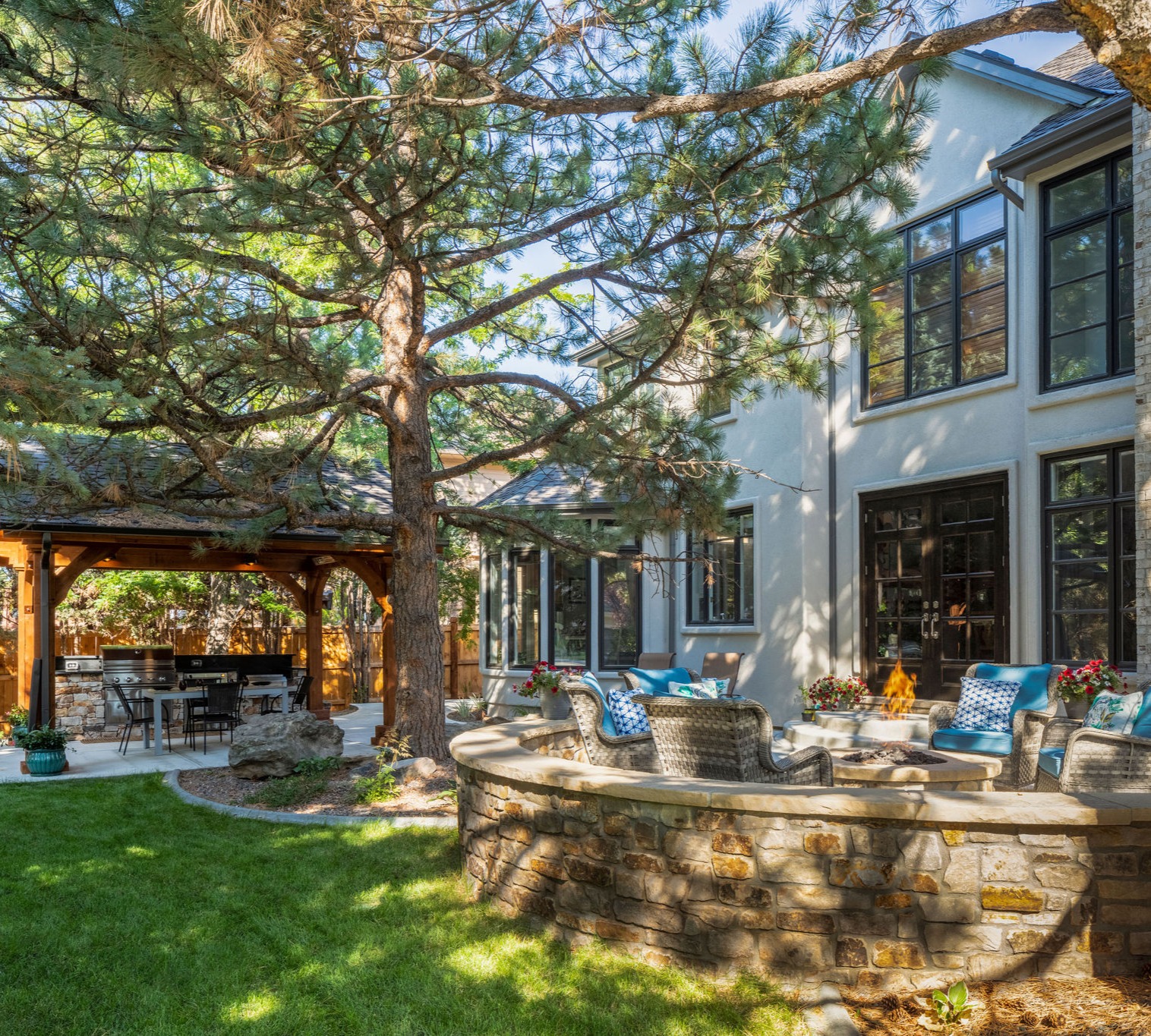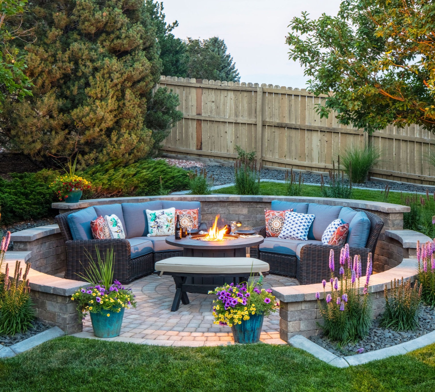 Design Exteriors specializes in large-scale Design and Build projects. Want your backyard to be the envy of the cul-de-sac when you host that Broncos party? Let us "trick" it out with a completely customized pergola, fire pit, water feature, privacy screening & specialty patios to set it all on. Want your home to be the loveliest on the lane? Let us design and install a gorgeous curb appeal revision for you. When you're ready to totally revamp your outdoor space and bring in the experts, we're the ones that you will love working with! We partner with homeowners to help them conceptualize what they want and/or need from their exterior home spaces and then we bring in our expert artisan crews to make that vision a reality. Our designs are characterized by elegant curves and sophisticated arcs we affectionately refer to as "Shoebridge Circles" after the lead designer (and owner of our firm) Cedric Shoebridge. Bricks, stone, and pavers have to be custom-cut to fit into these curves, but we know they're worth it because as we like to joke around the office, you never hear a grandma yell to the grandkids to "Gather Square!" We say, "Gather around," because it's circles that bring families together. We are proud to have an A+ rating with the BBB and have been a multiple Award Winner with Angie's List and Home Advisor. #GoBroncos