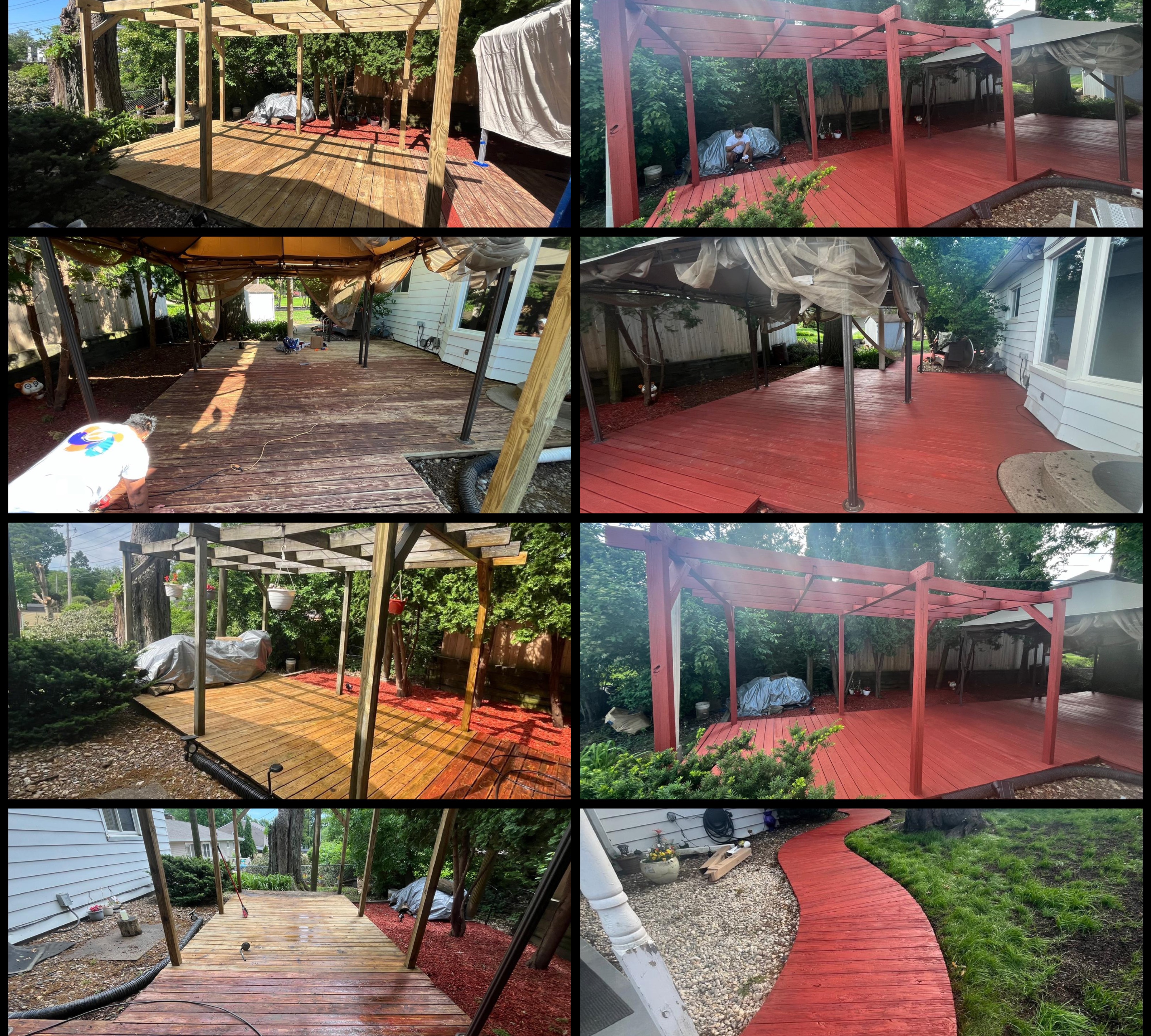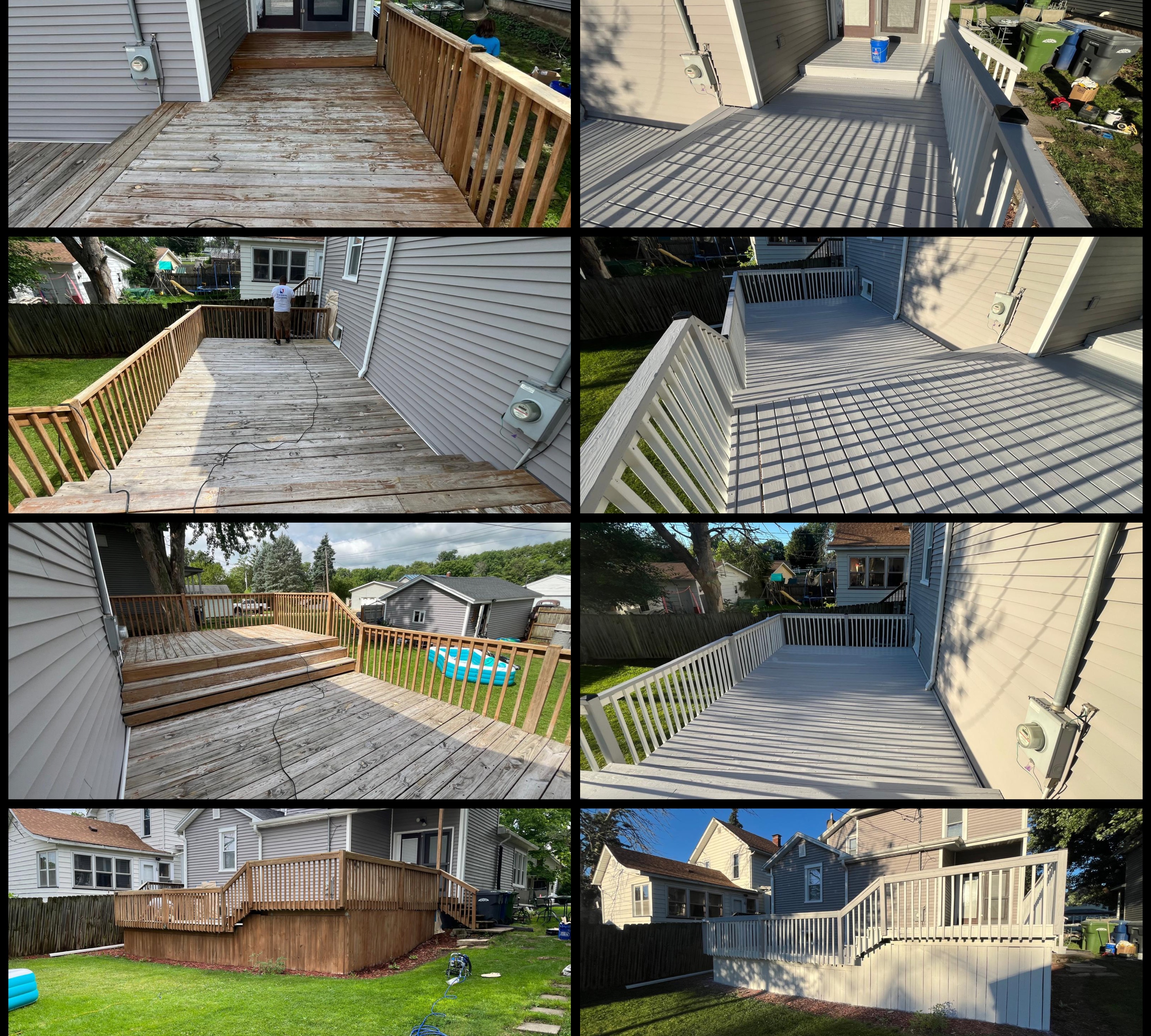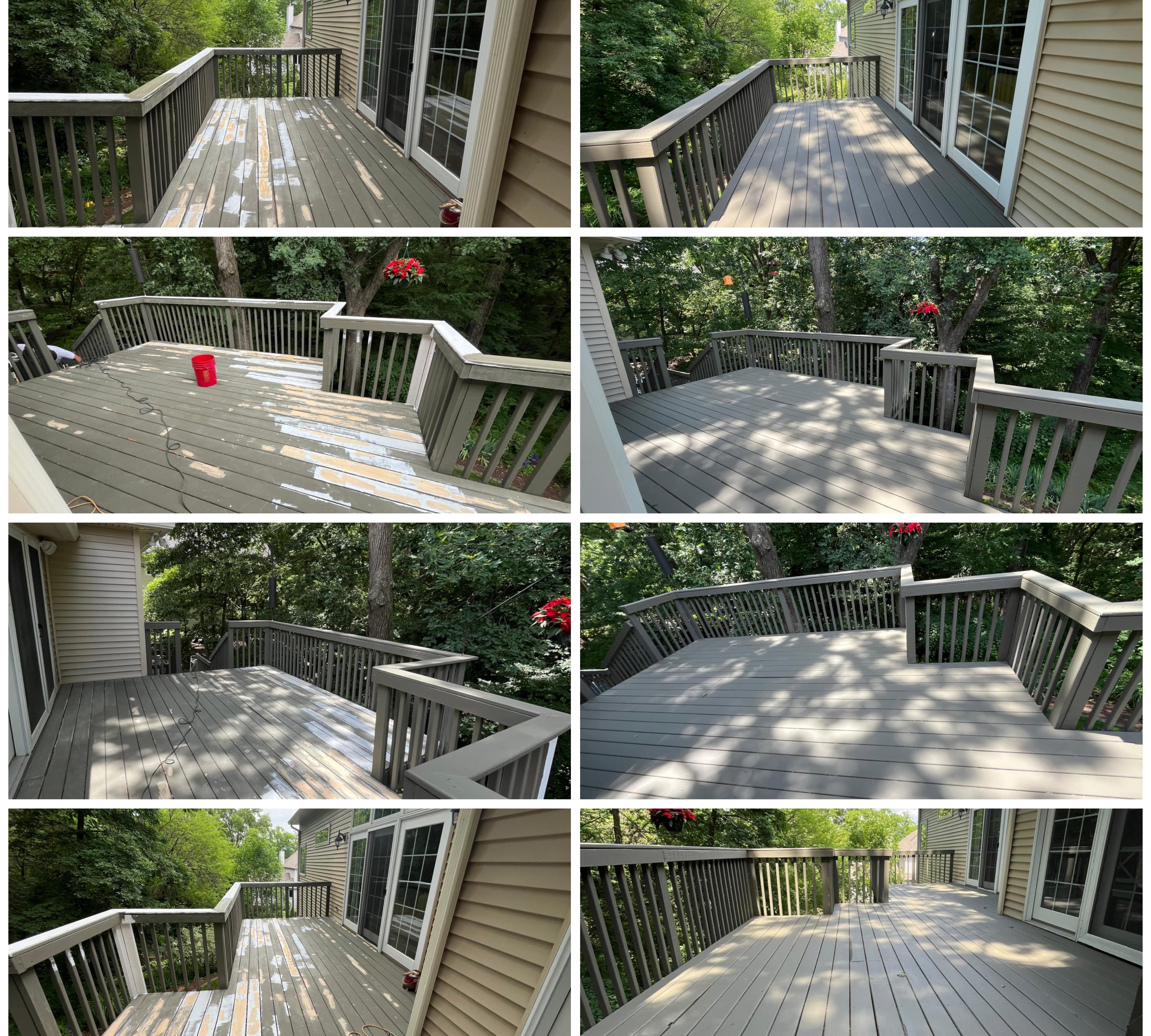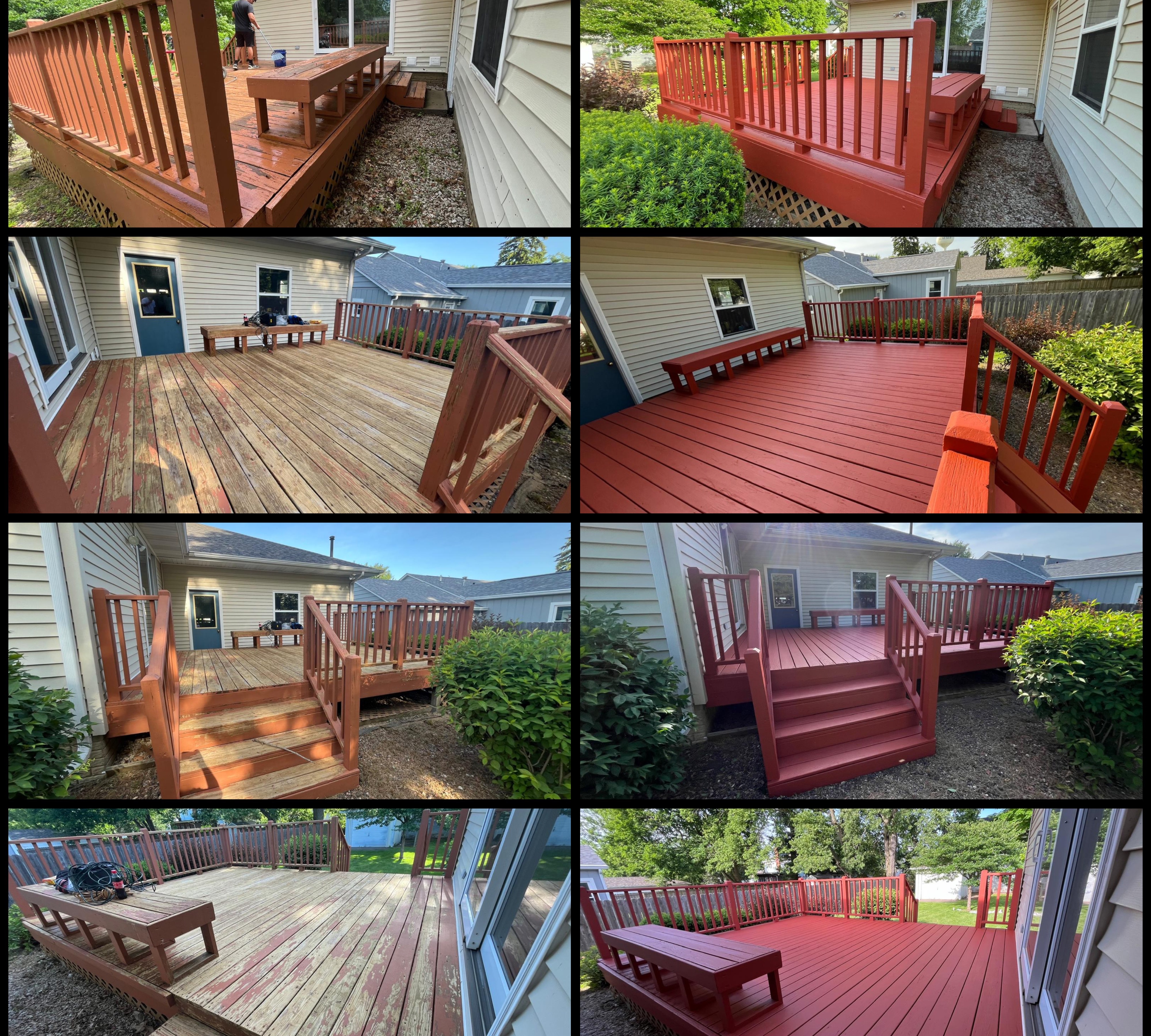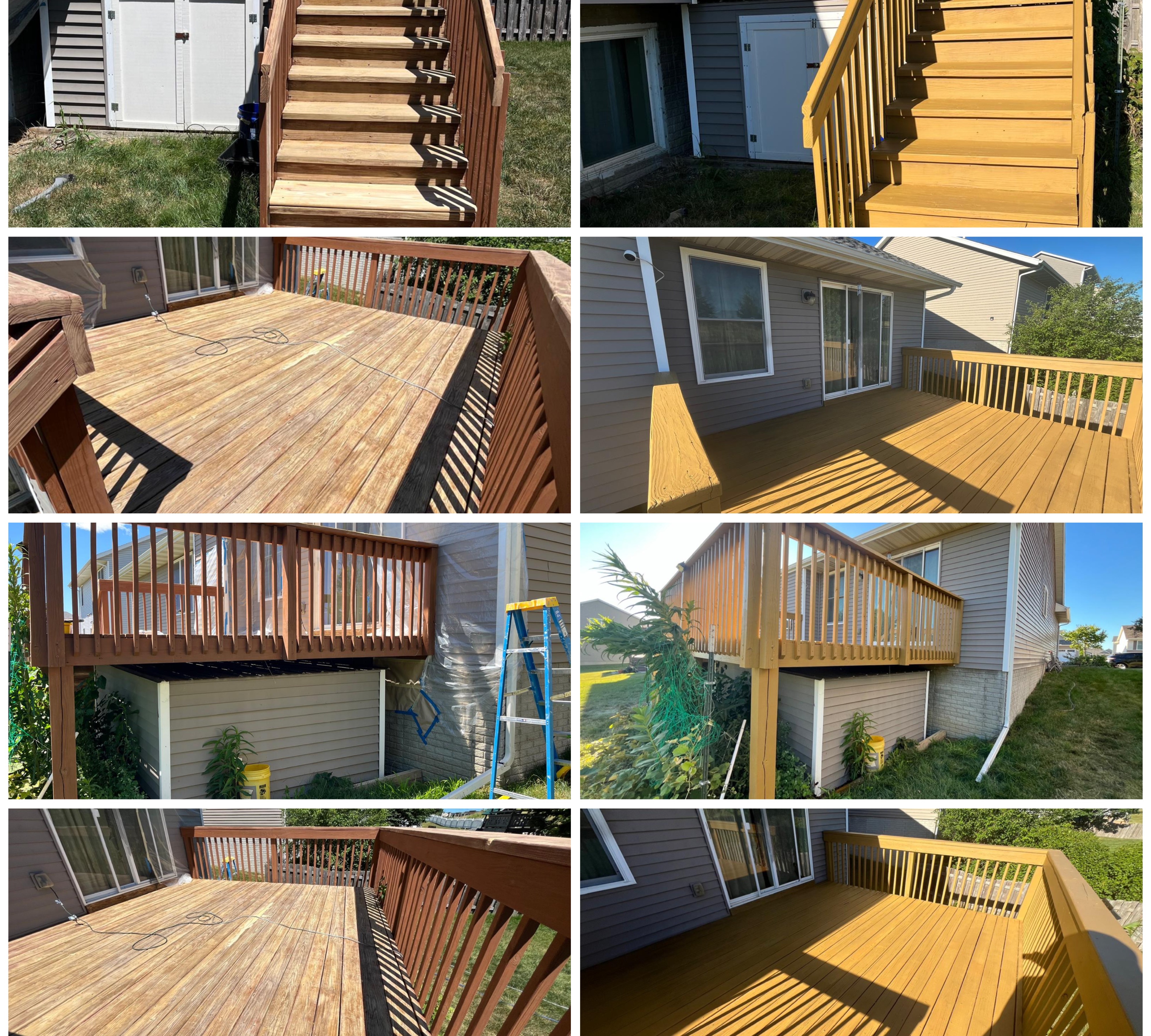 continuously stayed in contact with me while weather was not cooperating. Ended up coming on a Saturday and didn't leave until they finished my entire deck which is a large tri level with underskirting all the way around. And it looks fantastic!