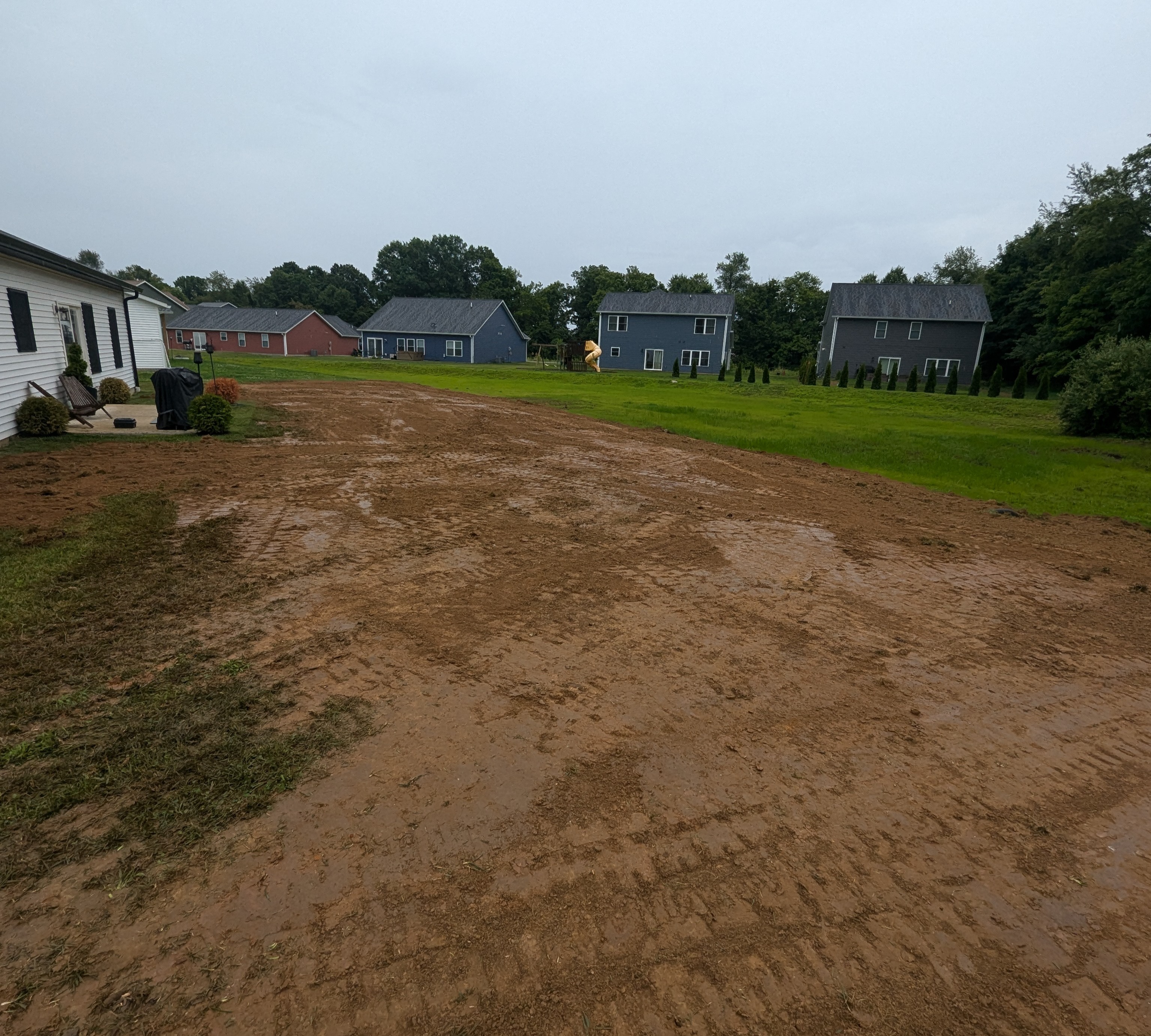 We specialize in dirt work, so filling holes, sloping and grading ground, french drains, ditch digging, releveling ground, final grade work for houses, retention walls and dams and also bull dozing ground for clear, treeless ground. We also do demolition of smaller residential buildings.