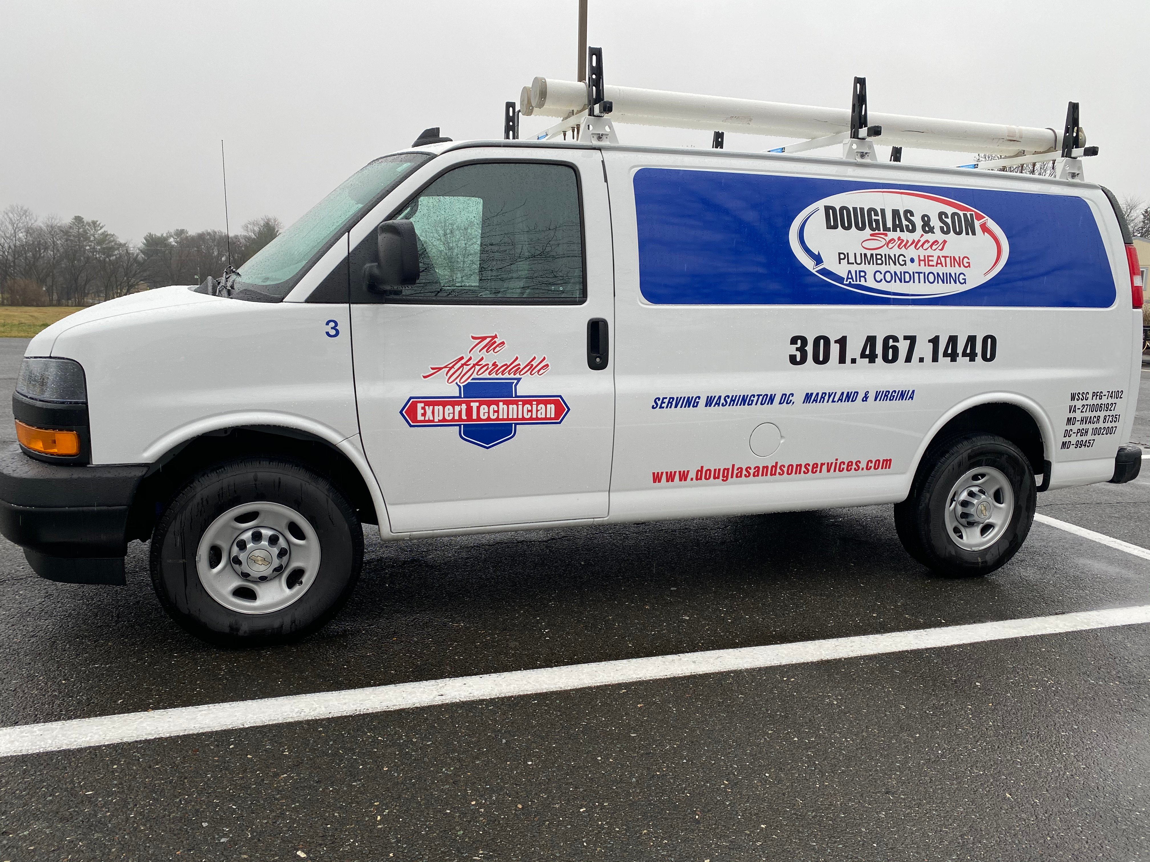 Douglas & Son Services specializes in, but is not limited to, providing the following types of RESIDENTIAL and LIGHT COMMERCIAL SERVICES in the Washington, D.C., Maryland and Virginia Areas: • Heating, Ventilation and Air Conditioning Unit Annual Check-Ups, Maintenance, Installation, Repair and Replacement • Thermostat Installation, Repair and Replacement • Boiler System Installation, Maintenance, Repair and Replacement • Gas Line Installation, Repair and Replacement • Plumbing Faucets & Fixtures Installation, Repair and Replacement • Rough-In Plumbing Work • Sewer Pipe Inspections • Sewer Drain Cleaning • Water Line Installations • Back-Flow Testing, Installation, Repair and Replacement • Tank and Tankless Hot Water Heater Installation, Repair and Replacement • Toilet, Sink, Vanity and Bath Tub/Shower Installation, Repair and Replacement • Garbage Disposal Installation, Repair and Replacement • Appliance (Dishwasher, Instant-Hot, Gas Range, Gas Grill, Gas Fireplace, Gas Dryer, etc.) Installation and Replacement • Whole-House Water Filtration Systems • Sump Pump Installation, Repair and Replacement • Ejector Pit/Grinder Pump Installation, Repair and Replacement • Ice Maker Connections