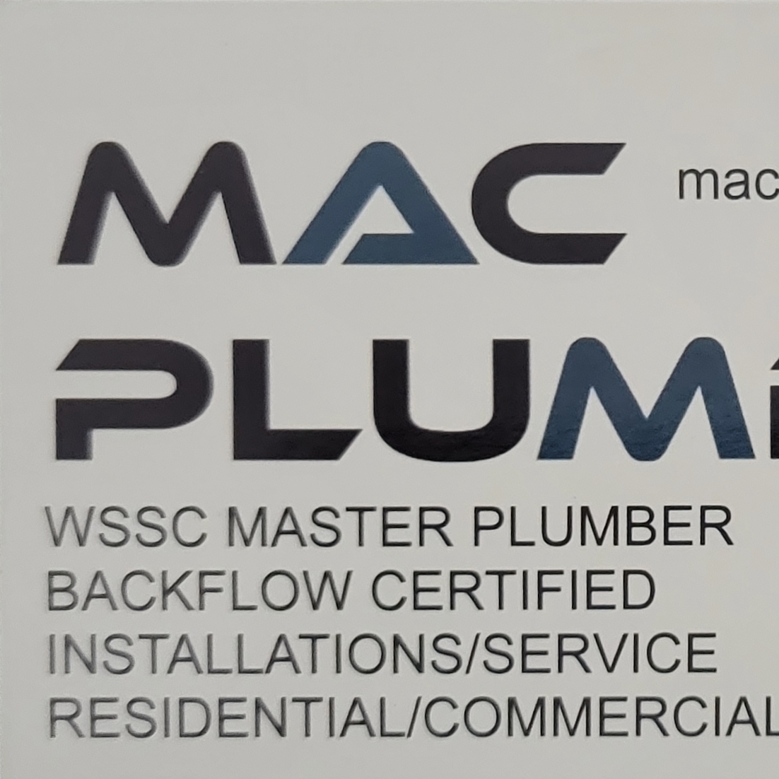 REPAIR OR INSTALL WATER HEATERS GAS OR ELECTRIC WATER SUPPLY LINES (ALL TYPES) SEWER DRAIN LINES (ALL TYPES) INTERIOR /EXTERIOR DRAINS SHUT OFF VALVES/ ISOLATION VALVES GARBAGE DISPOSALS FAUCETS/SINKS SHOWERS/SHOWER FAUCETS TOILETS/VANITIES/TUBS AND MUCH MORE KNOWLEDGEABLE, HONEST, I EDUCATE MY CUSTOMER ON THEIR PLUMBING ISSUE OVER 20YRS EXPERIENCE, WSSC MASTER PLUMBER MAC PLUMBING LLC/OWNER OPERATED