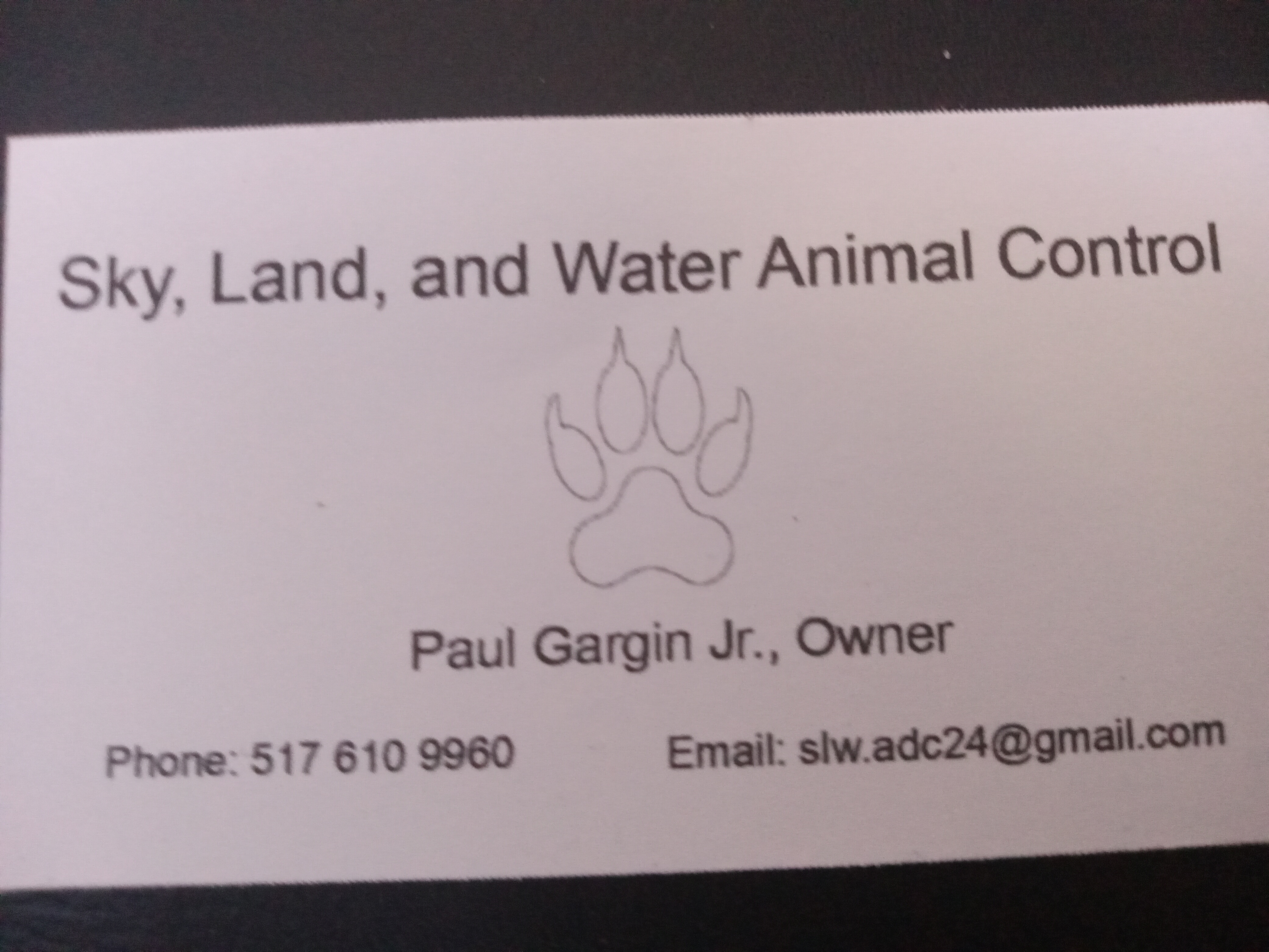 Response from Sky Land and Water animal Control