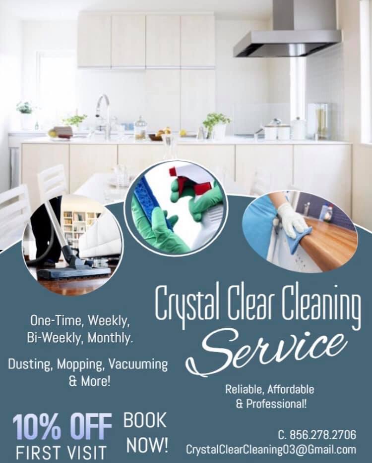 Need Your House, Apartment Or Office Cleaned? Look No Further! Crystal Clear Cleaning Offers Top Quality Cleaning Services At A REASONABLE Price! Guaranteed Customer Satisfaction And You Will Call For Our Services Again! Kitchens, Bathrooms, Bedrooms, Basements, Offices, Etc! Flat Rates! Willing To Provide Same-Day Service If Requested! Reliable, Affordable And Professional! Call Us Or Email Us For Inquiries And Pricing At: (609) 509-6543 Or [email protected]