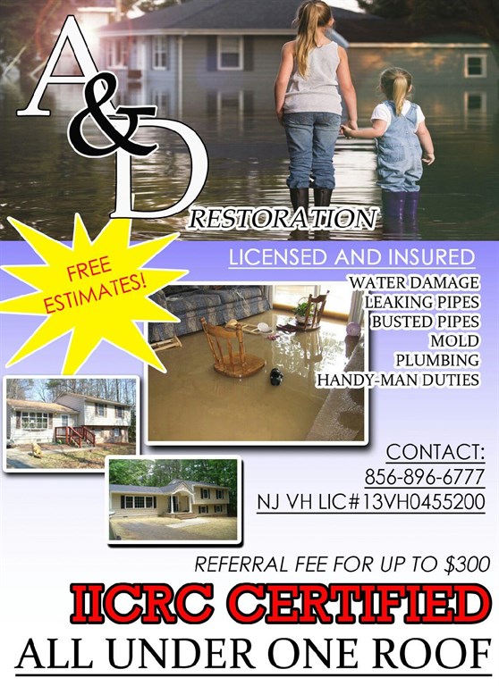 A & D Restoration is a new Family owned company. We Are fully licensed and insured. We concentration on water, fire and mold damage. But we also do bathroom and kitchen remodeling and plumbing work.
