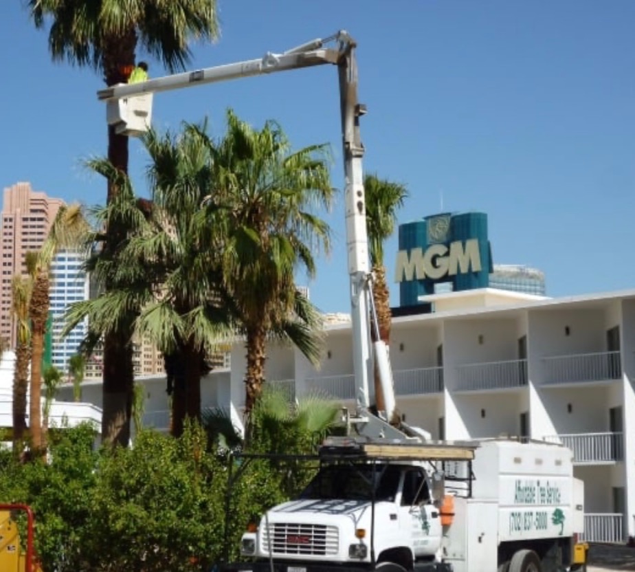 Trimming palm trees at the MGM