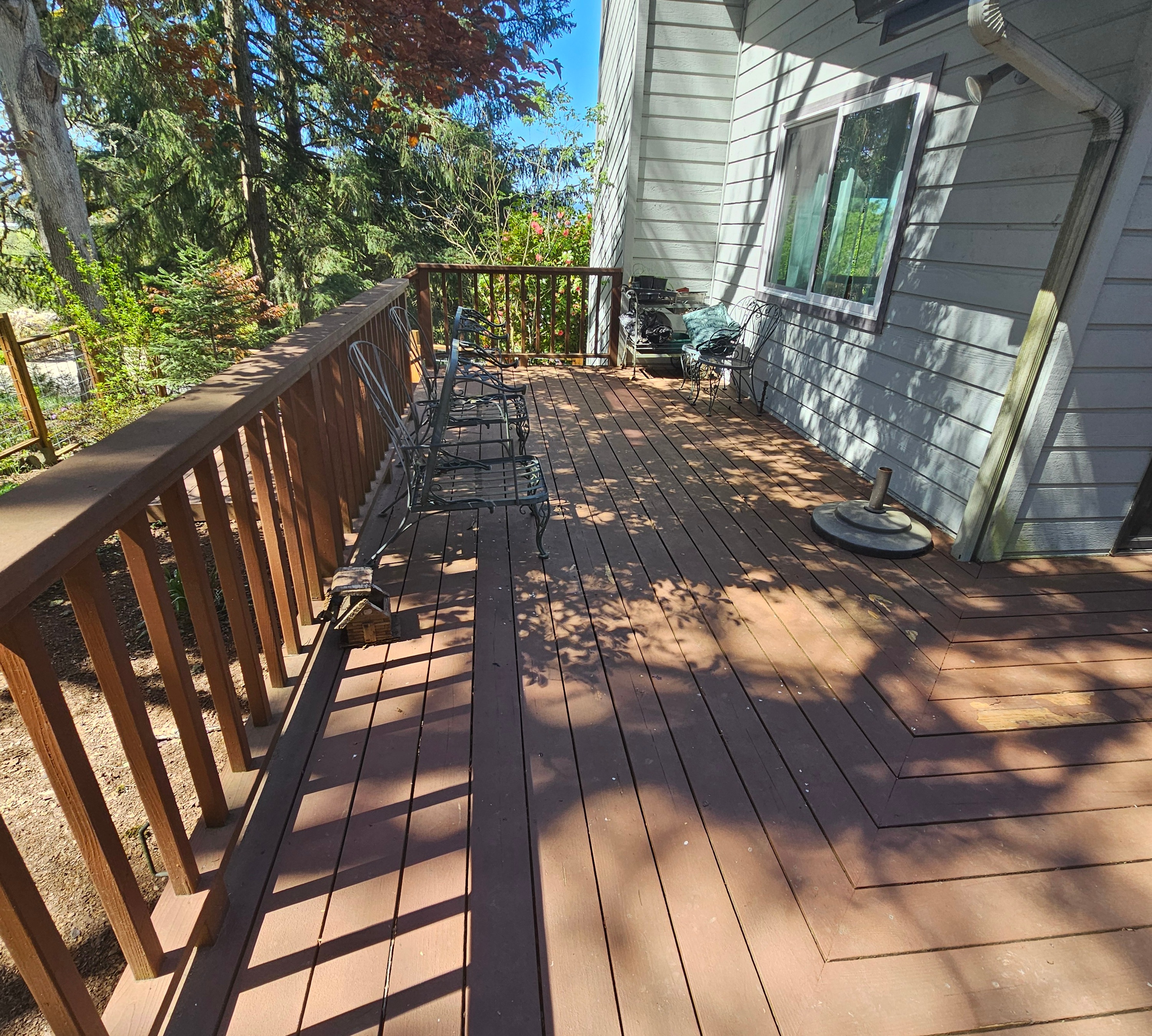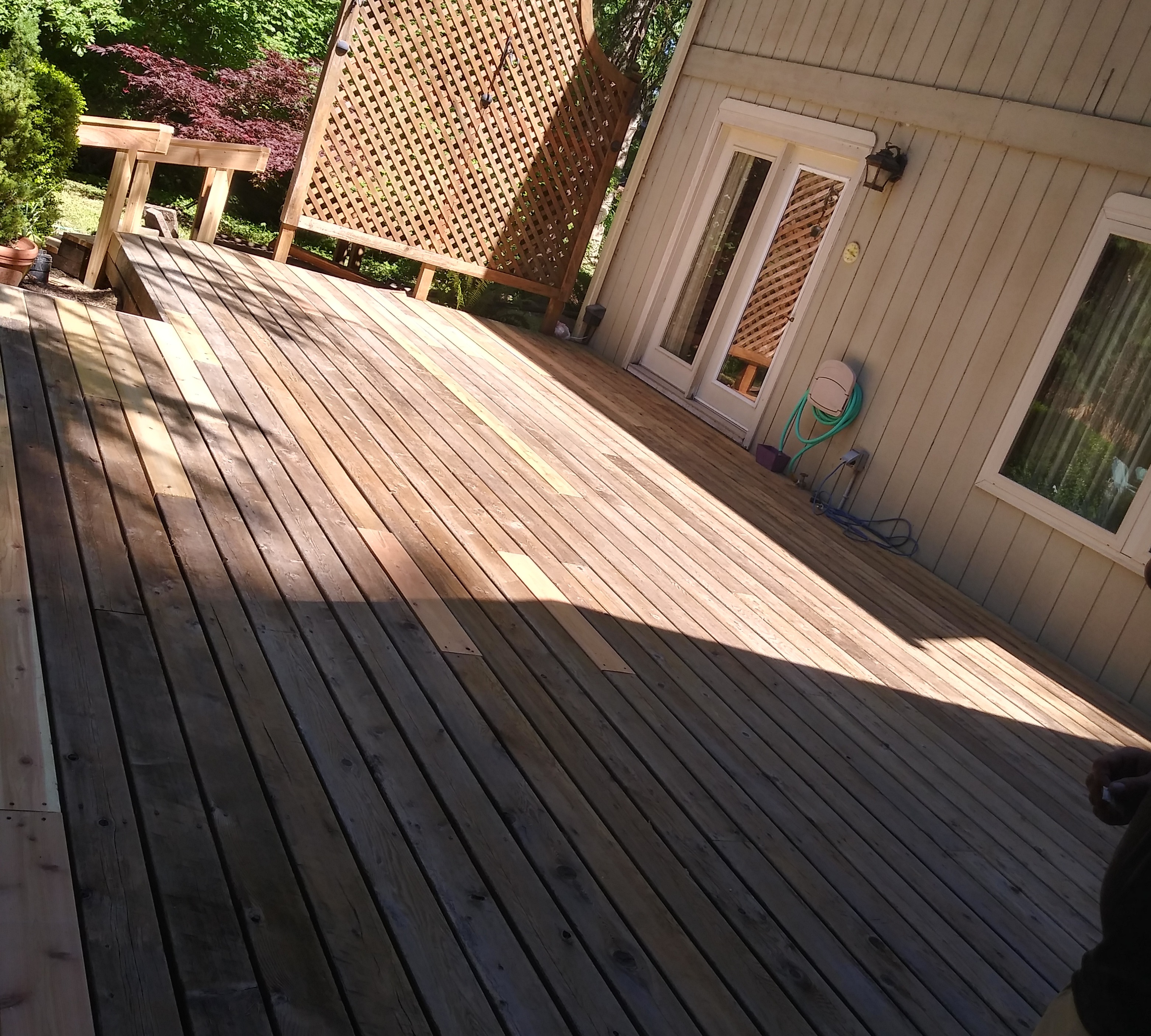 Deck repair, wood border rebuild, and stain
