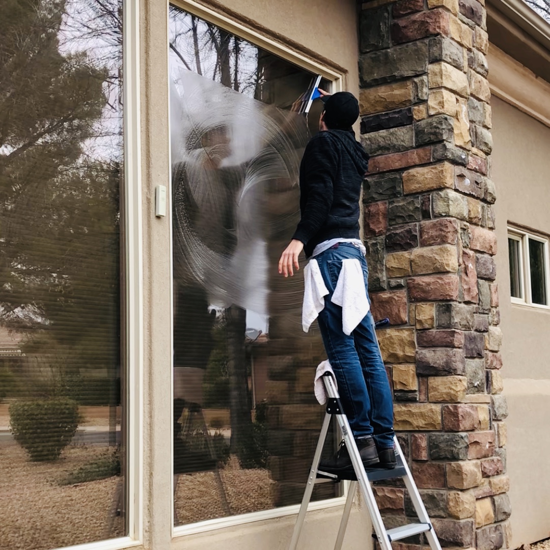 Window cleaning, hard water removal, screen cleaning, track cleaning, screen repair, ceiling fan cleaning.