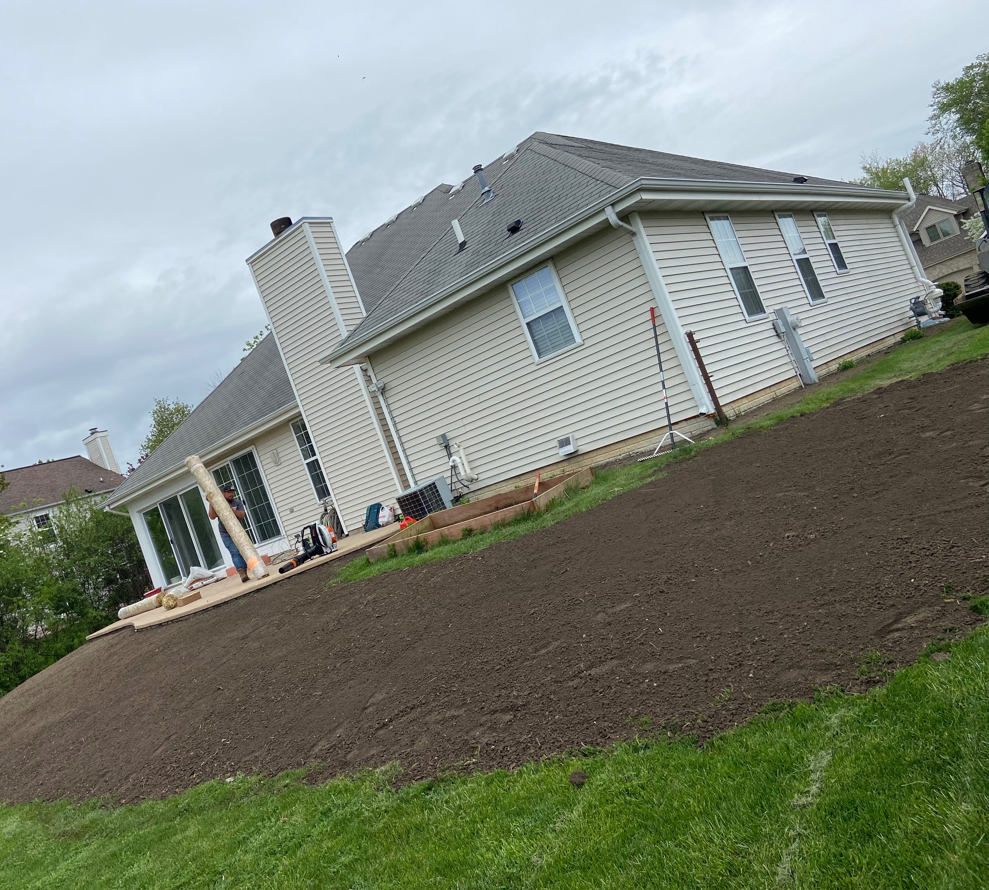 Landscaping/ grading and installation of grass rolls